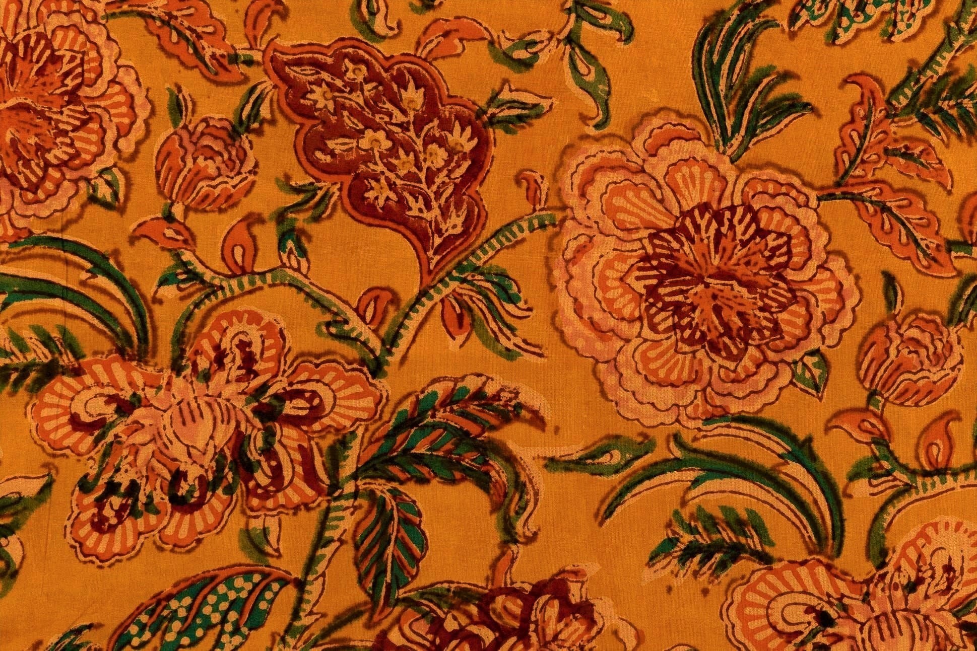 Being a hand block printed fabric, the textile may have slight irregularities in colors and prints.