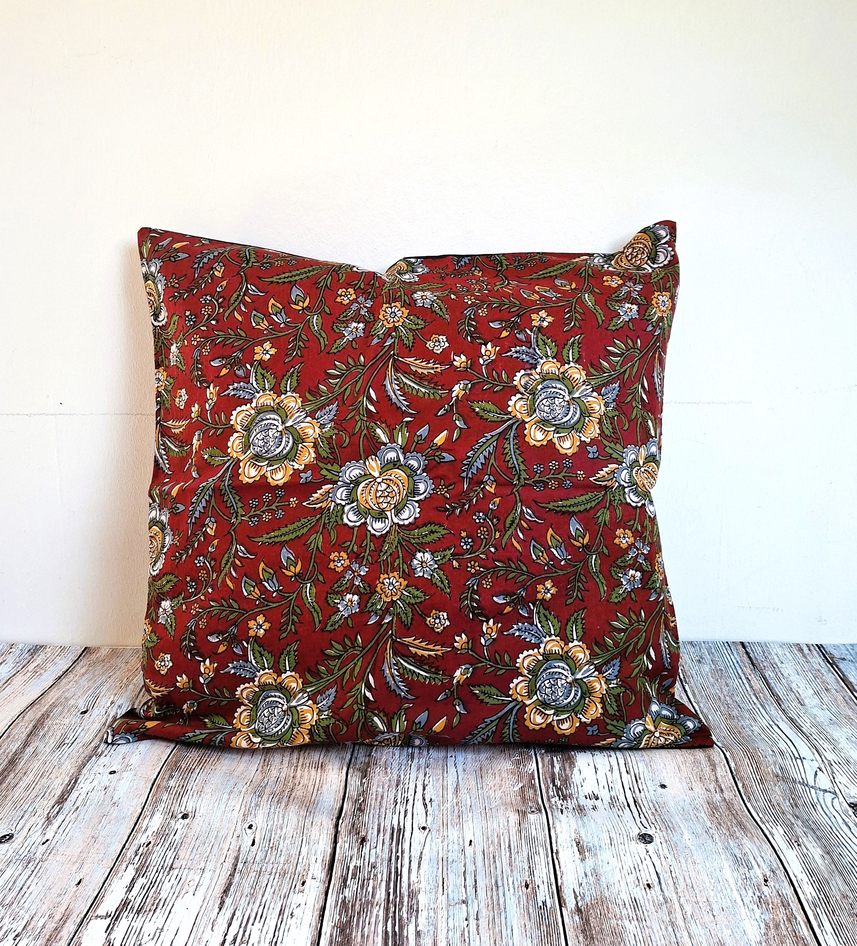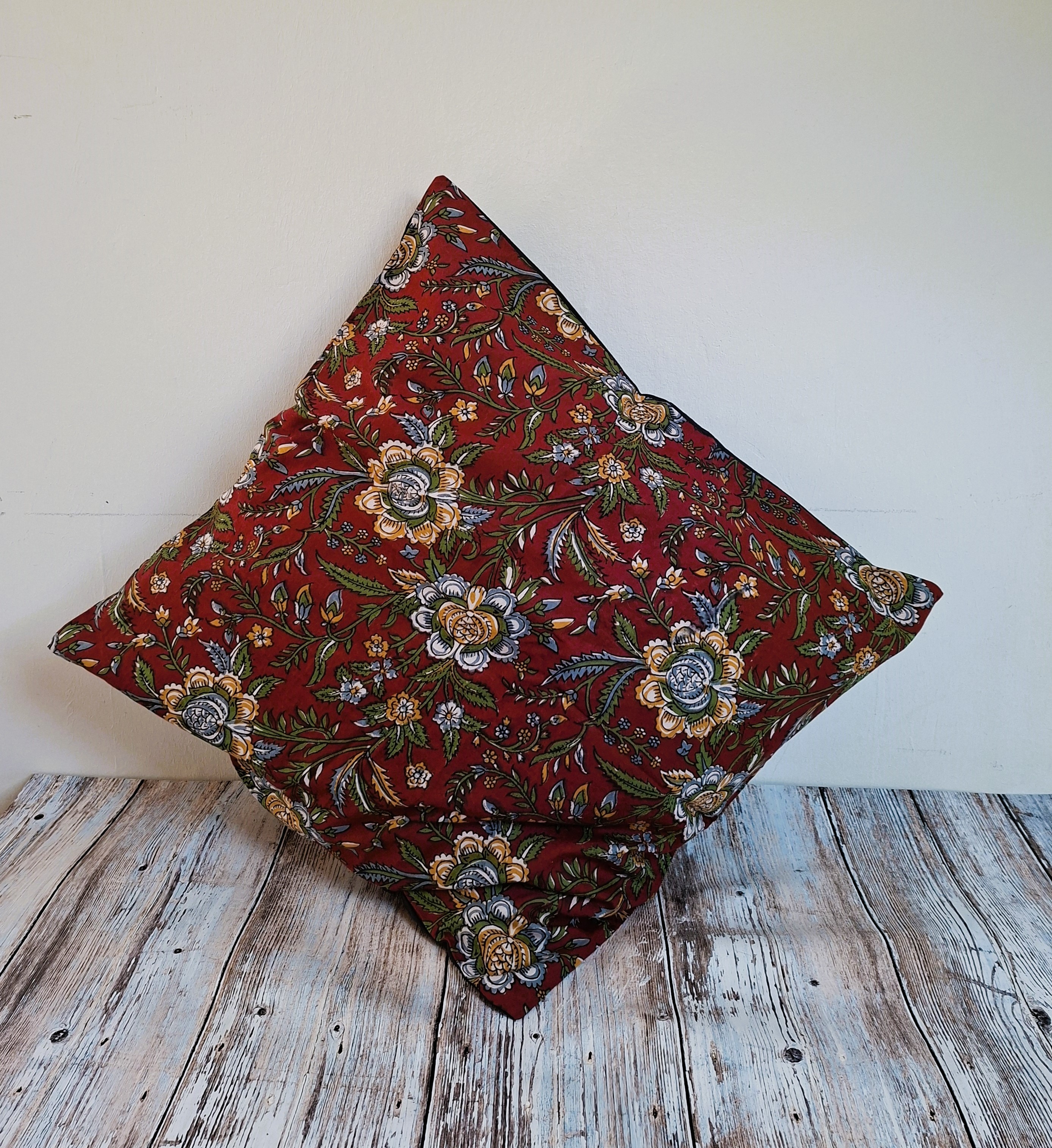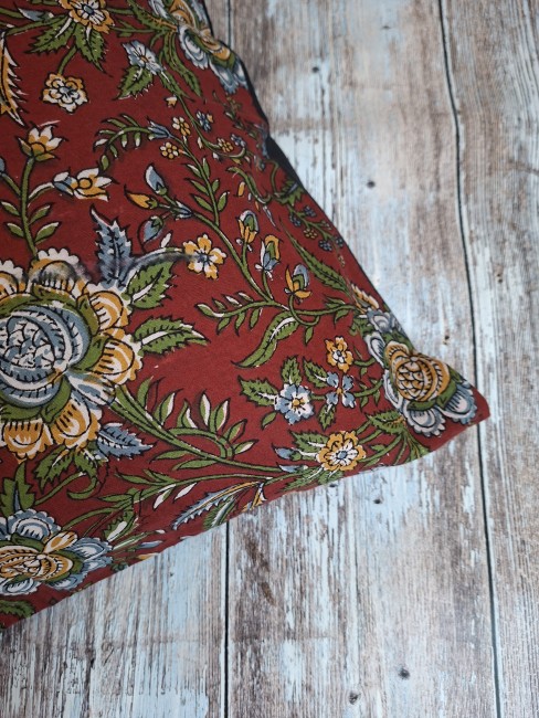 Indian hand block printed square cushion cover in pure Indian cotton of excellent quality.