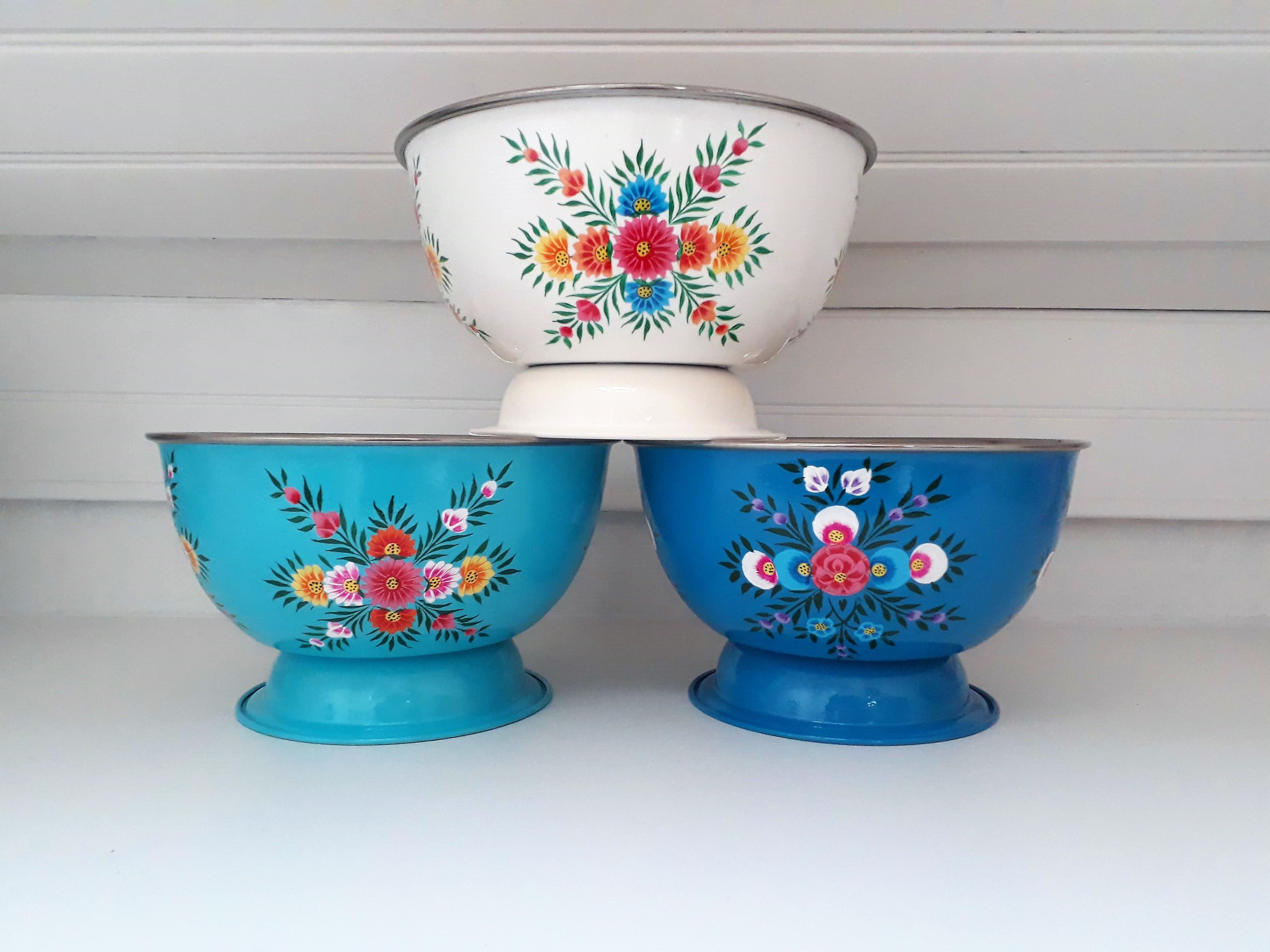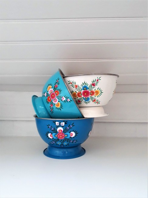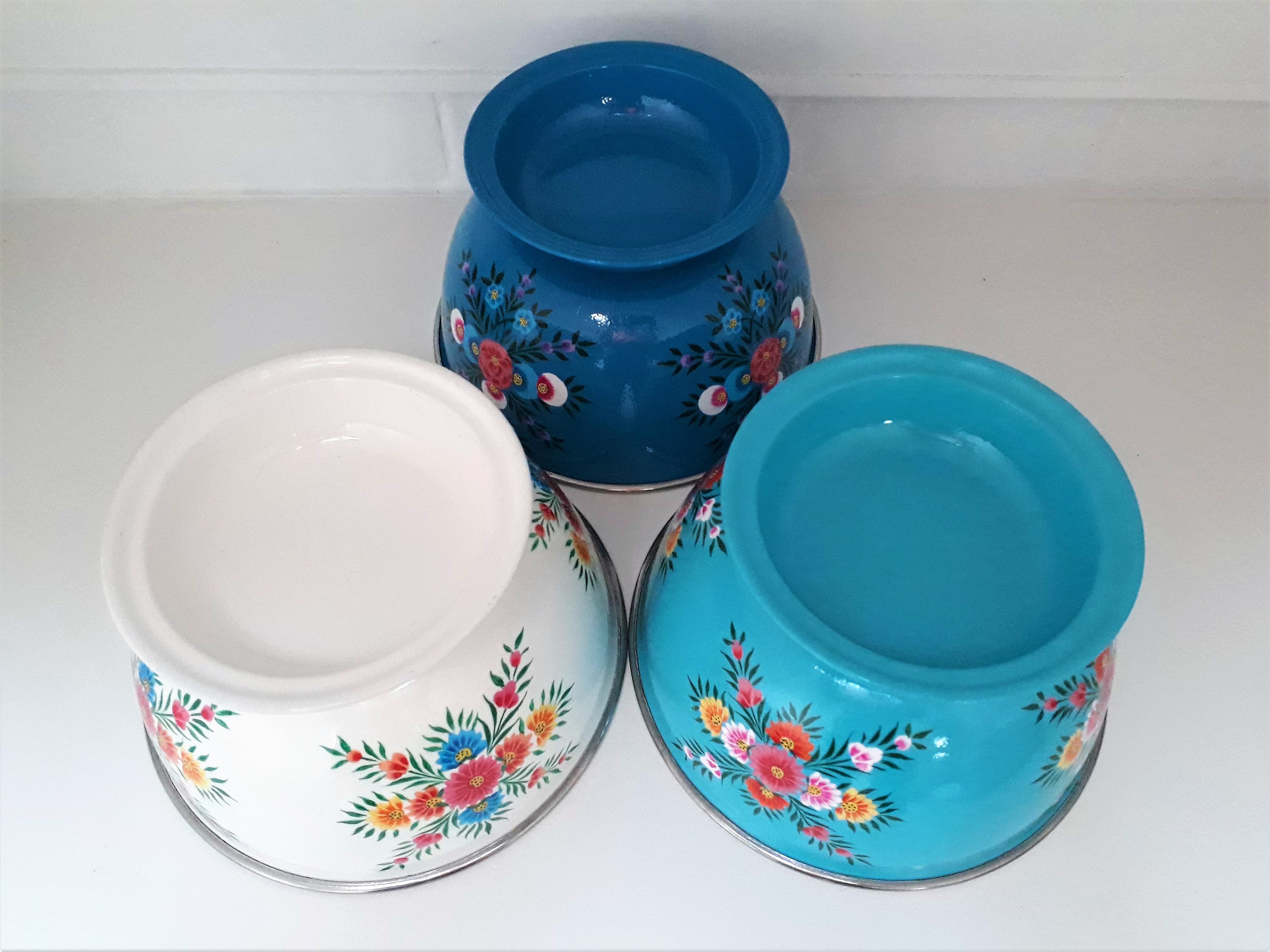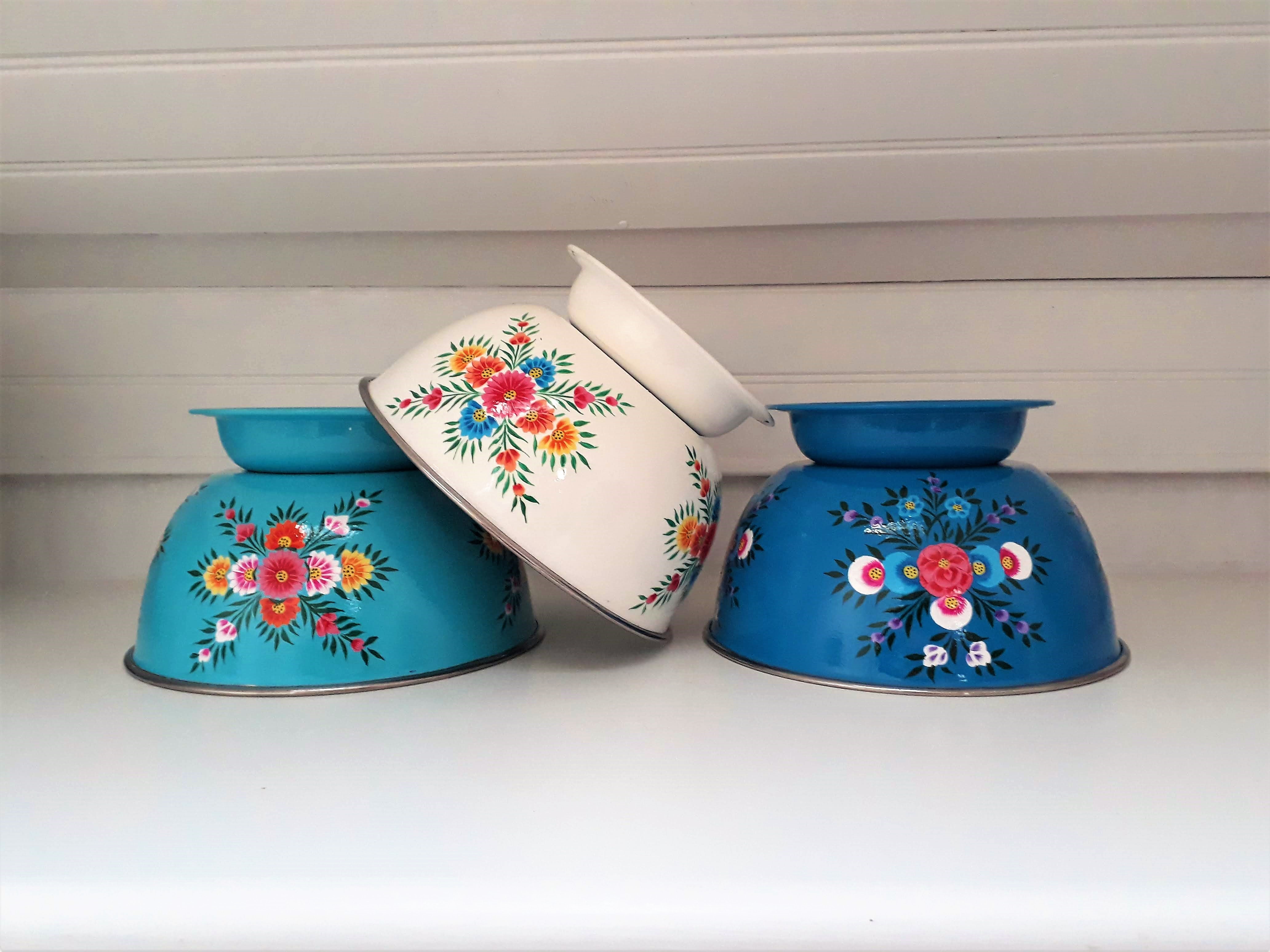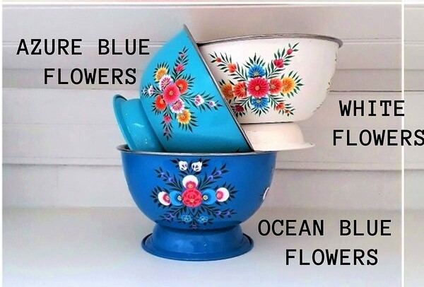 Saladier/ Grand Bol en inox émaillé, peins à la main en Inde (région du Kashmir).