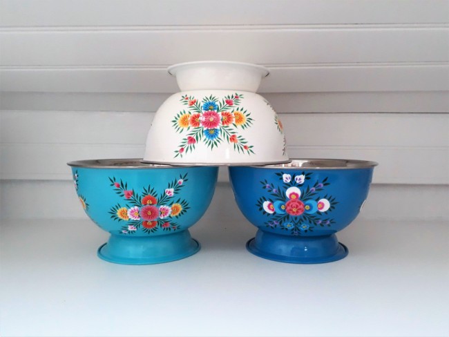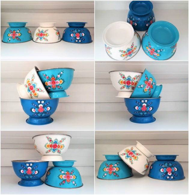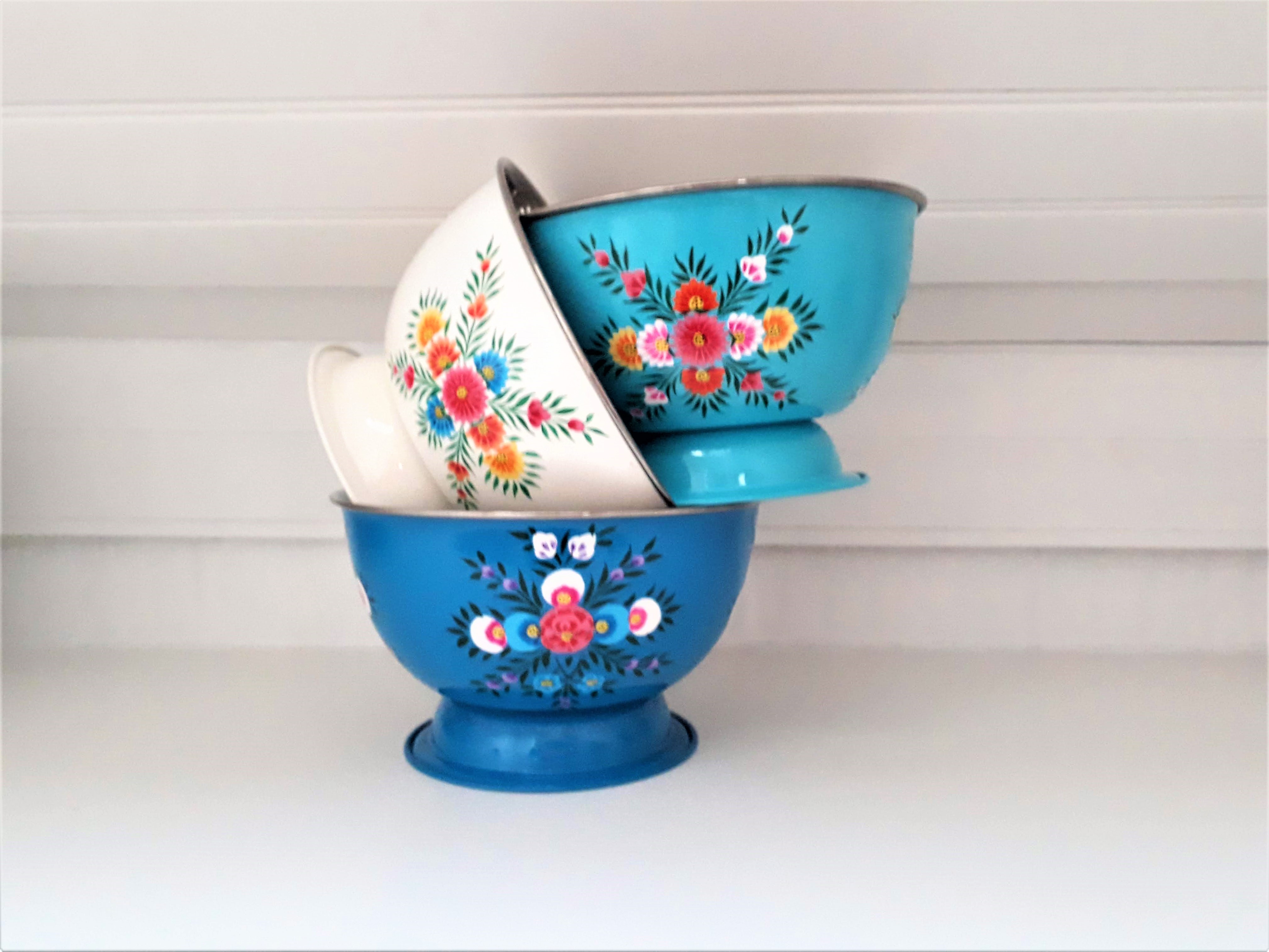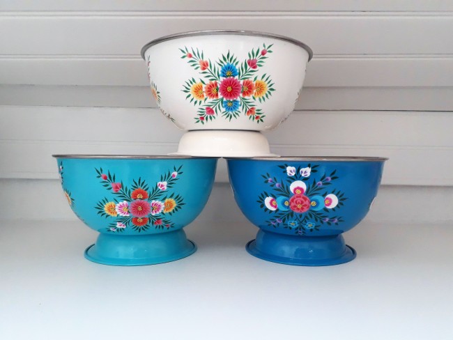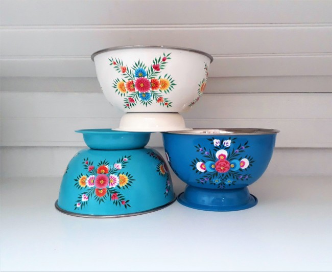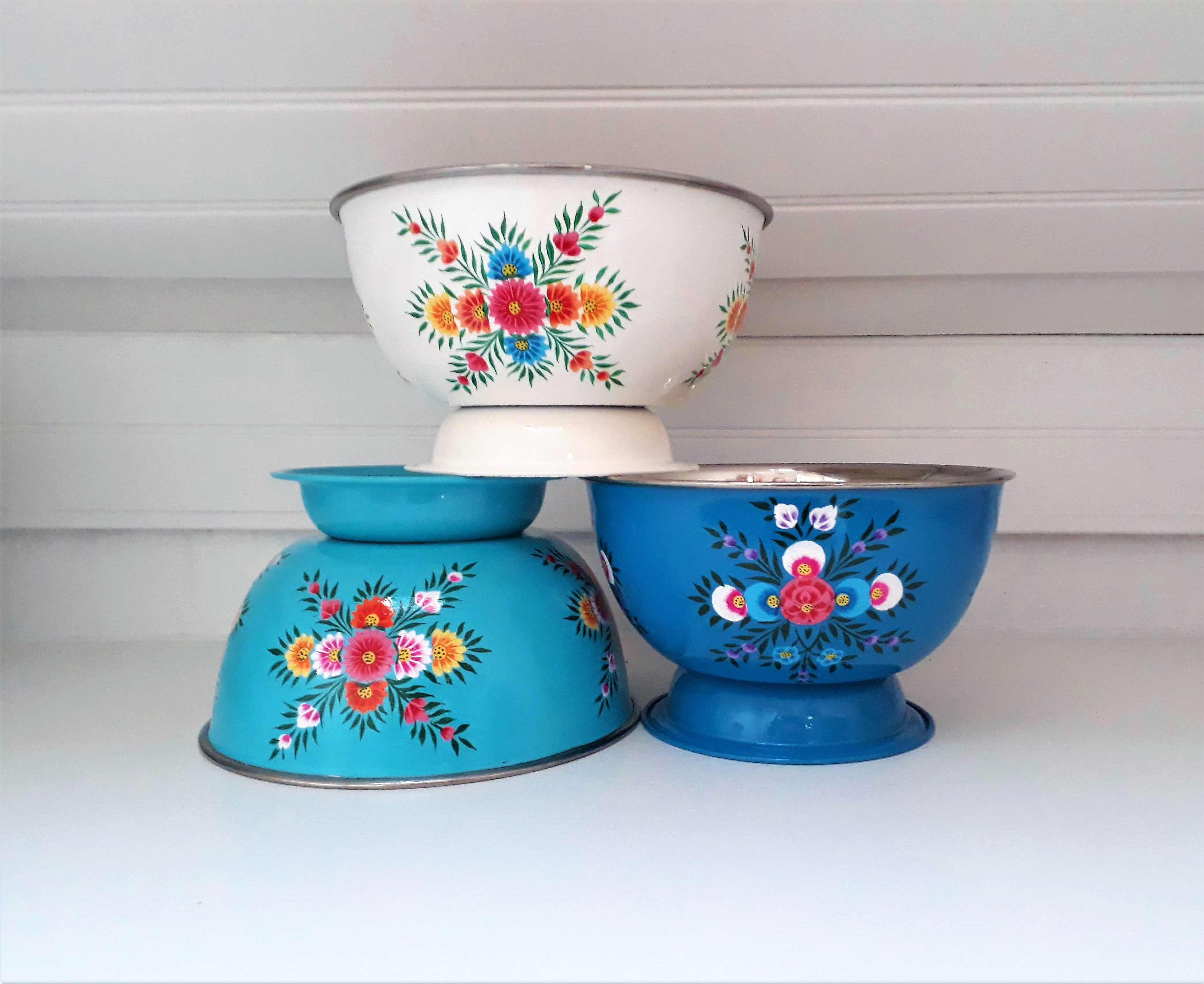 Saladier/ Grand Bol en inox émaillé, peins à la main en Inde (région du Kashmir).