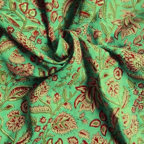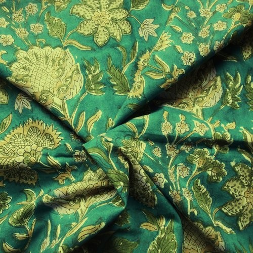 Tissu indien en coton léger aux motifs imprimés à la main au block print en Inde.