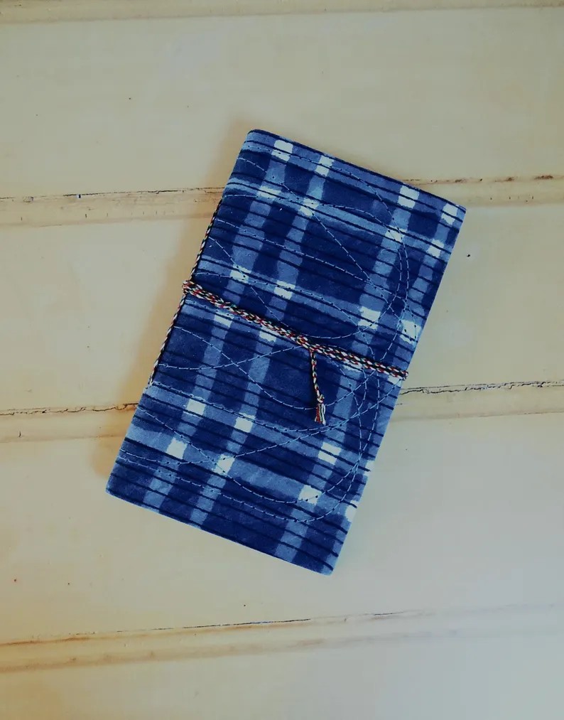 -Le carnet se referme grâce à un lien en coton multicolore cousu sur la tranche du carnetr et à enrouler autour.