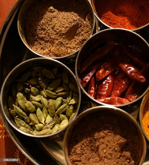 Indian spices box/Masala Box (or Masala Dabba) in stainless steel with 7 small cups (Ø 8cm / height 5 cm)