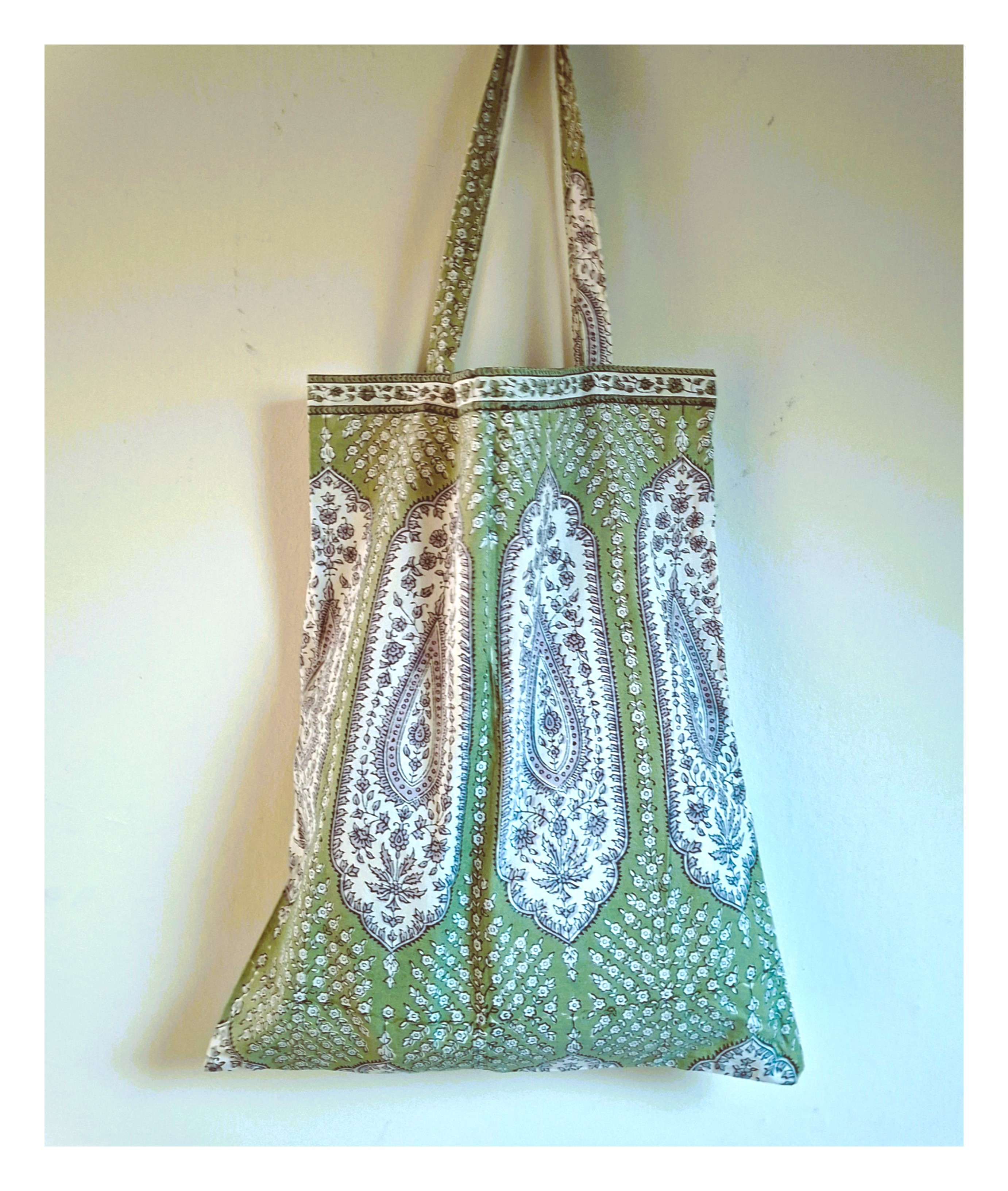 Jolis sac fourre-tout en coton indien imprimé à la main avec des tampons en bois sculptés, selon la technique traditionnelle d'impression du block print.