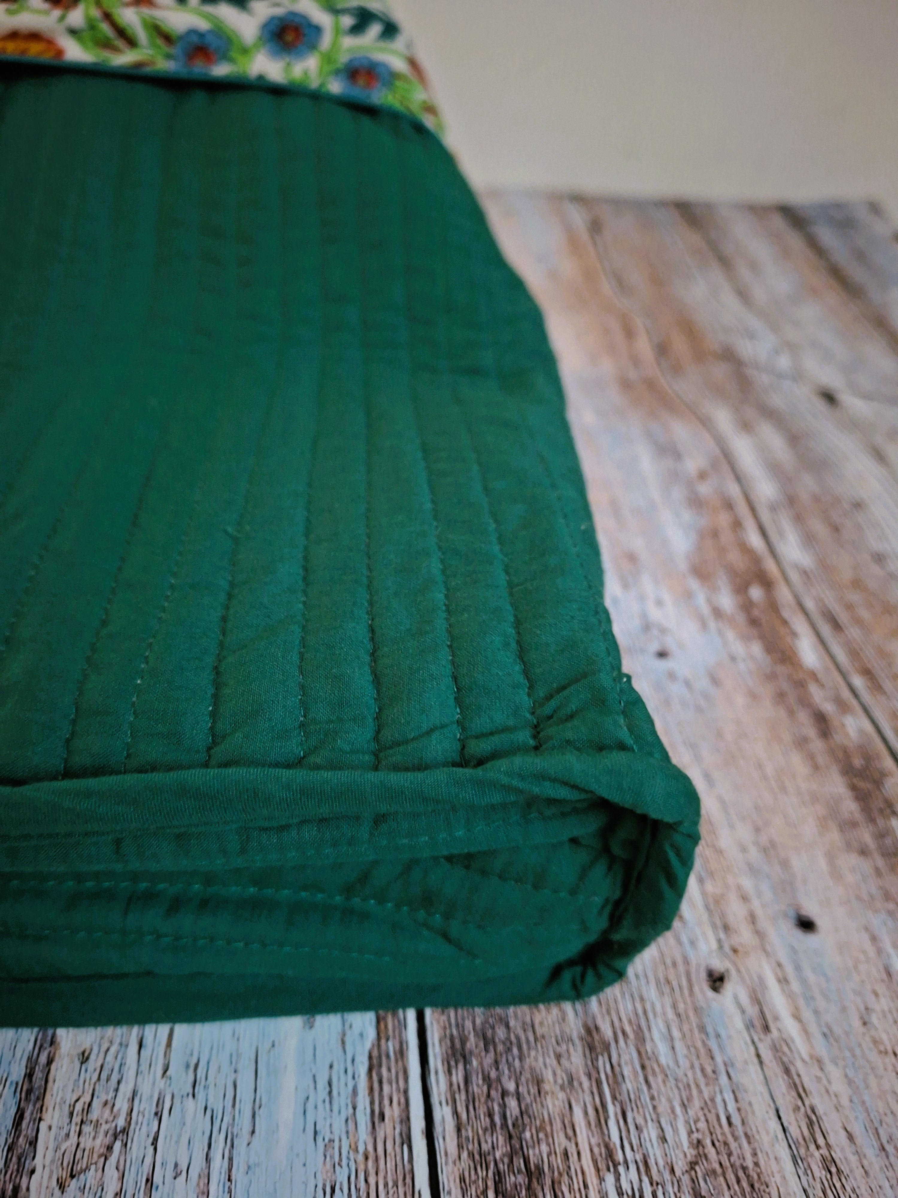 Joli sac/cabas rectangle matelassé en coton indien imprimé à la main, selon la technique traditionnelle du block print.
