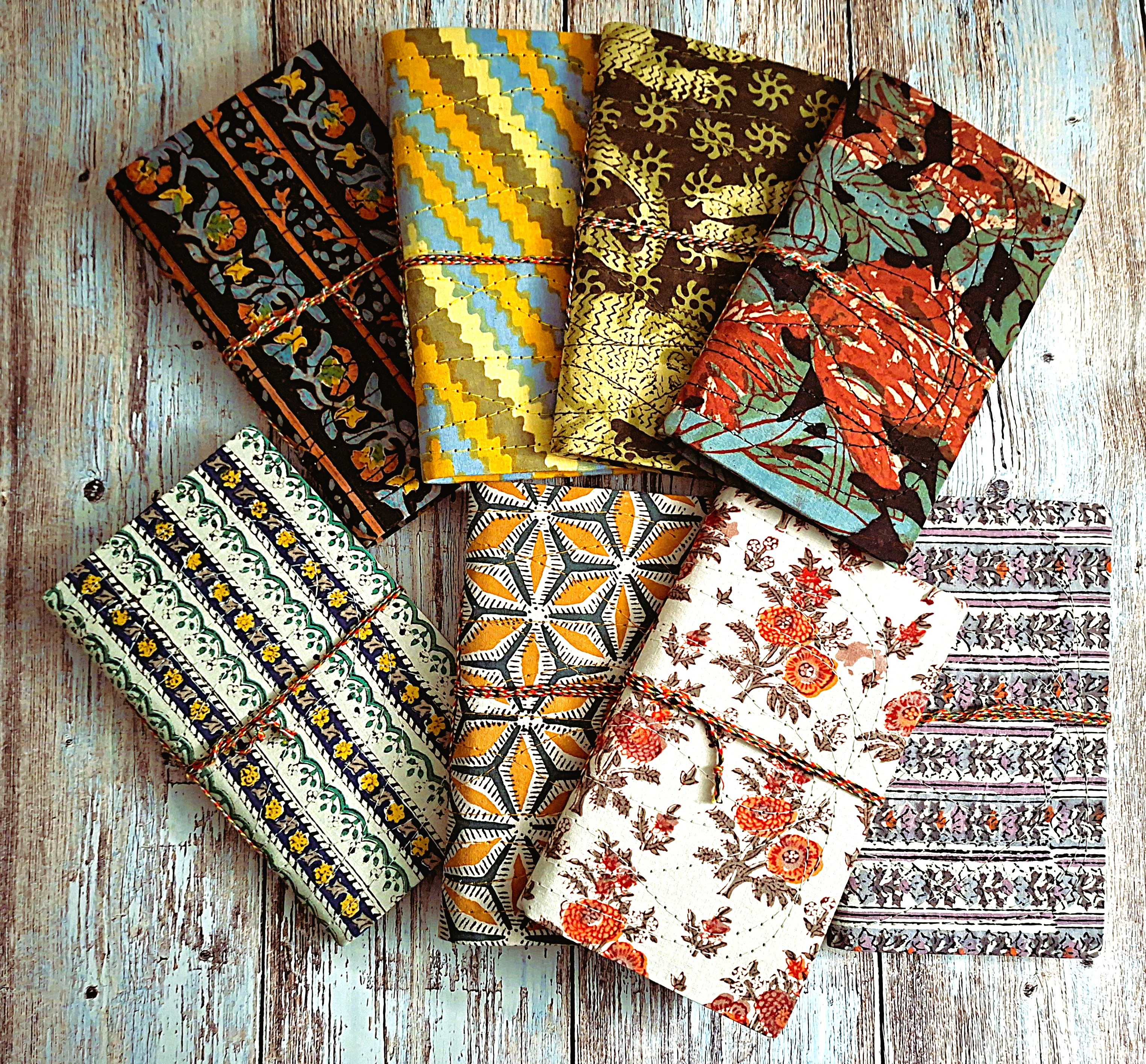 Note that these lovely Indian notebooks are unique pieces handcrafted in India. However, imperfections are likely to be present such as the gluing of the fabric, the stitching of the pages etc., visible on the photos of each notebook. But be sure that they are all very strong to be handled over and over again and that they have a neat finish.