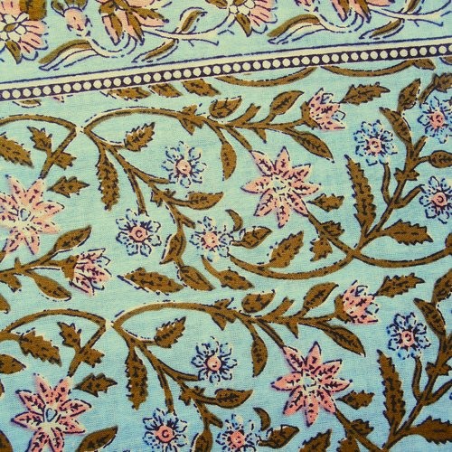 Tissu indien en coton léger aux motifs imprimés à la main au block print en Inde.