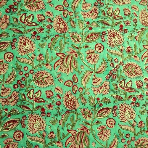 Being a hand block printed fabric, the textile may have slight irregularities in colors and prints.