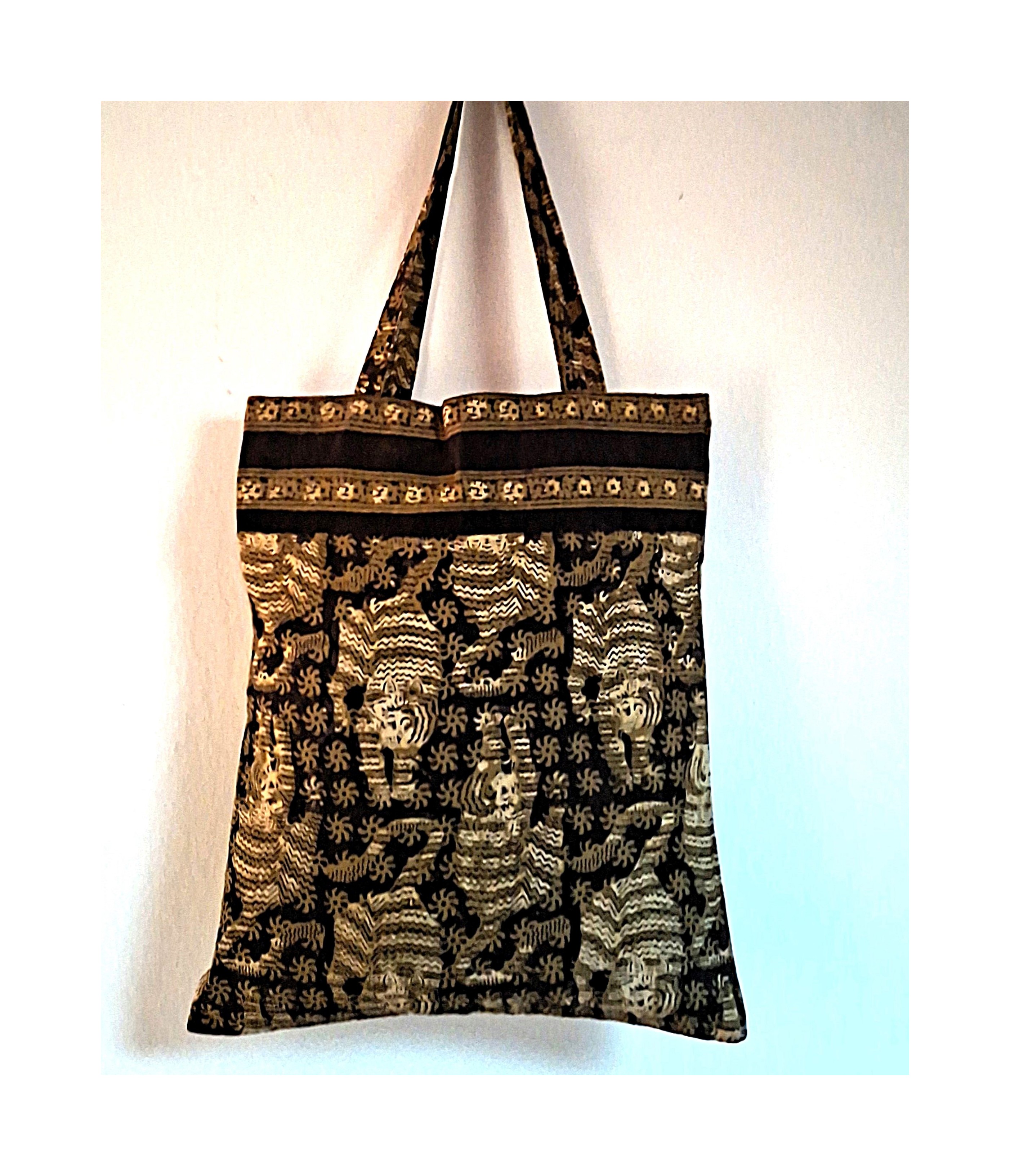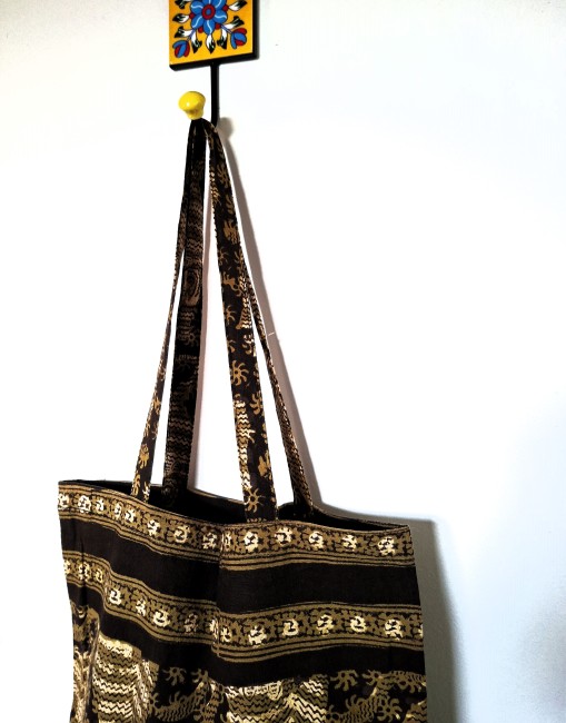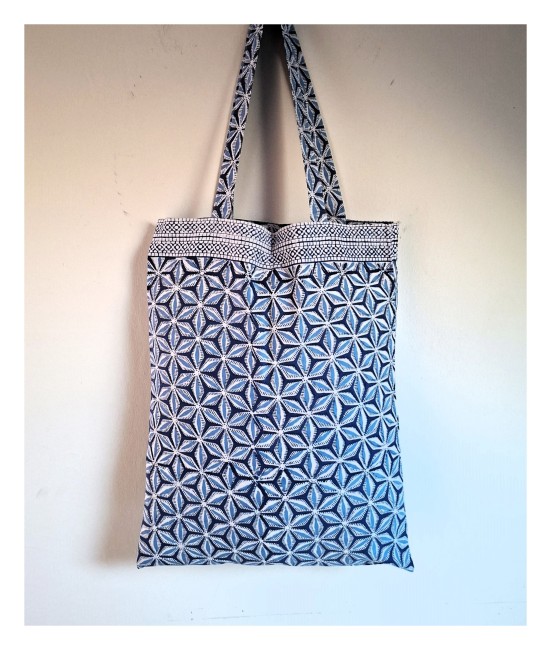Jolis sac fourre-tout en coton indien imprimé à la main avec des tampons en bois sculptés, selon la technique traditionnelle d'impression du block print.