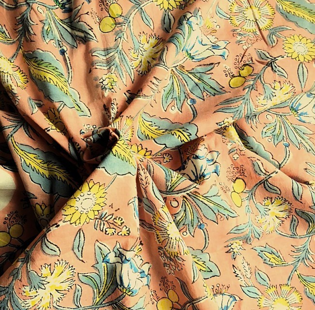 Being a hand block printed fabric, the textile may have slight irregularities in colors and prints.