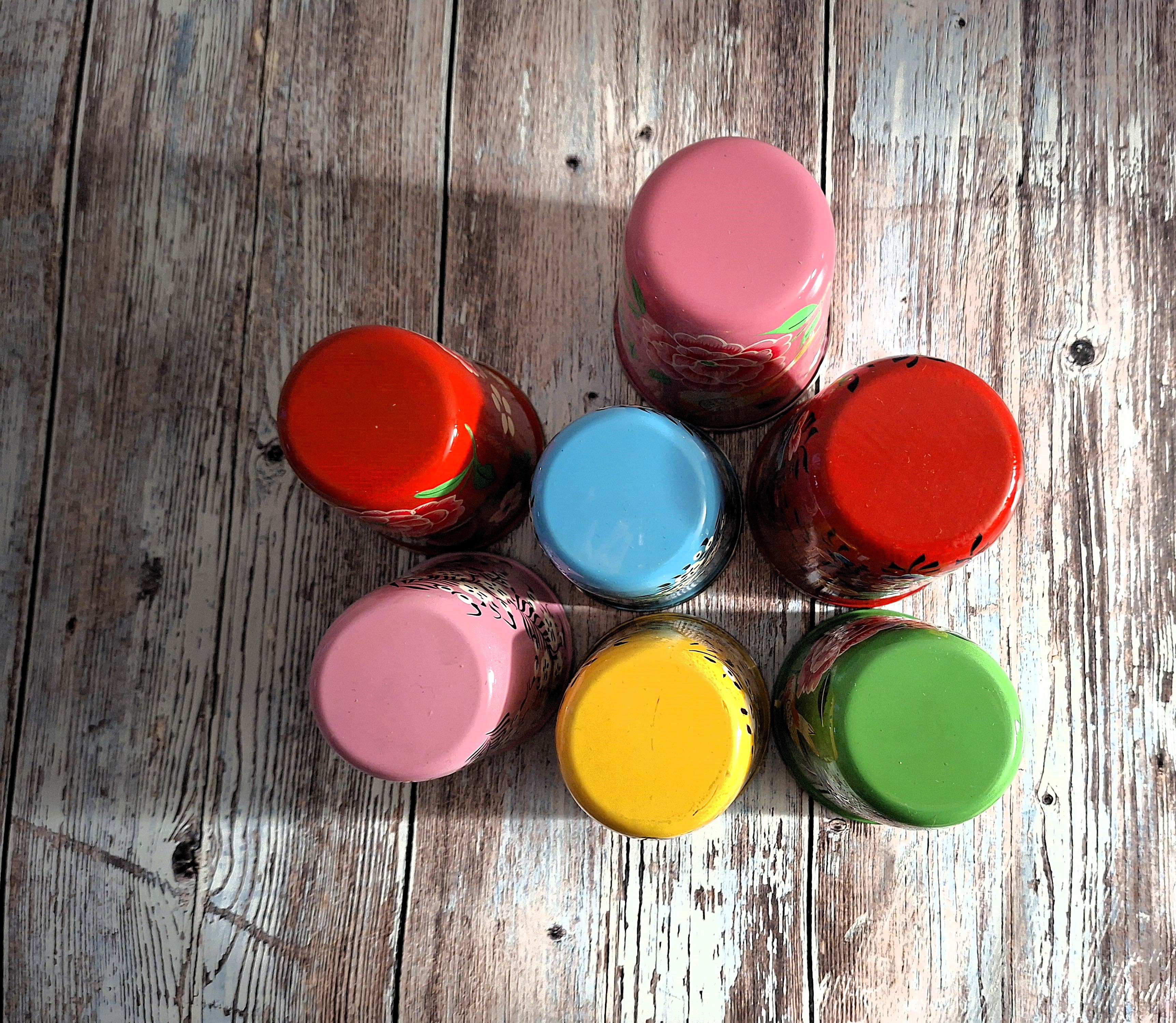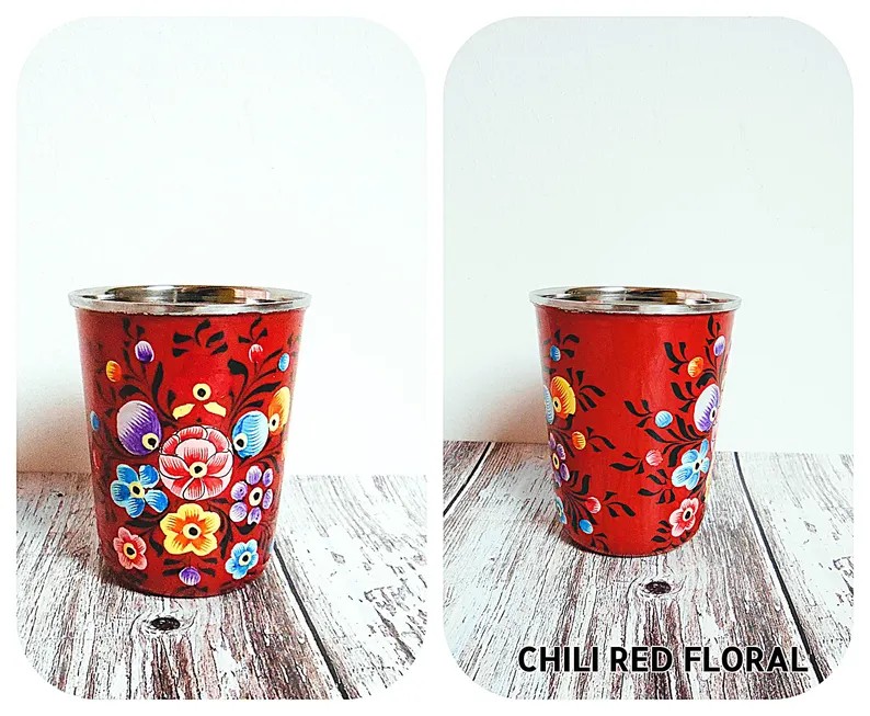 Cute tumbler, cup or small vase in stainless steel (inside) and varnished / enameled outside.