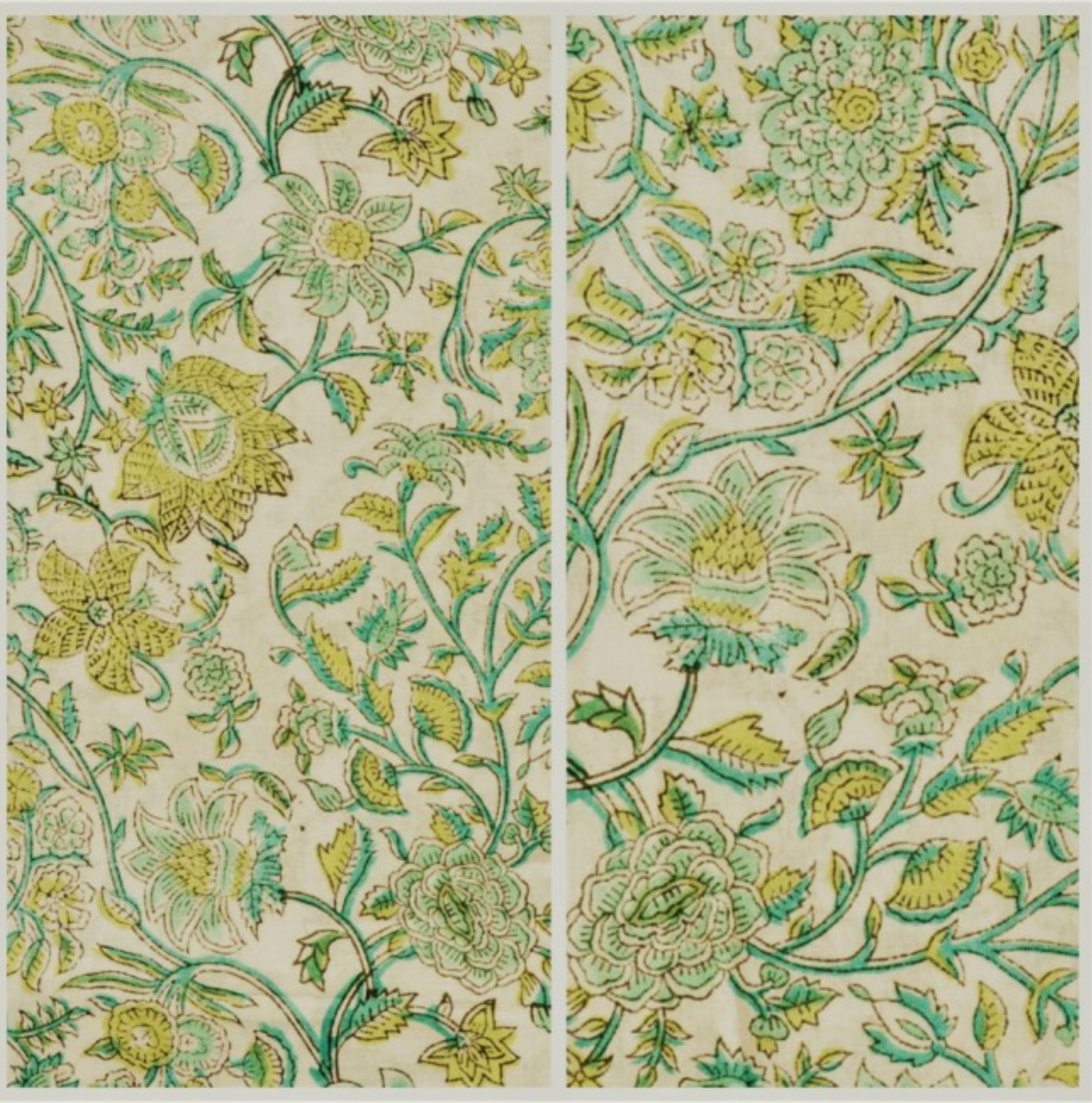 Being a hand block printed fabric, the textile may have slight irregularities in colors and prints.