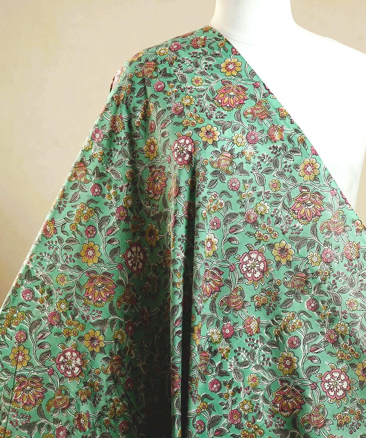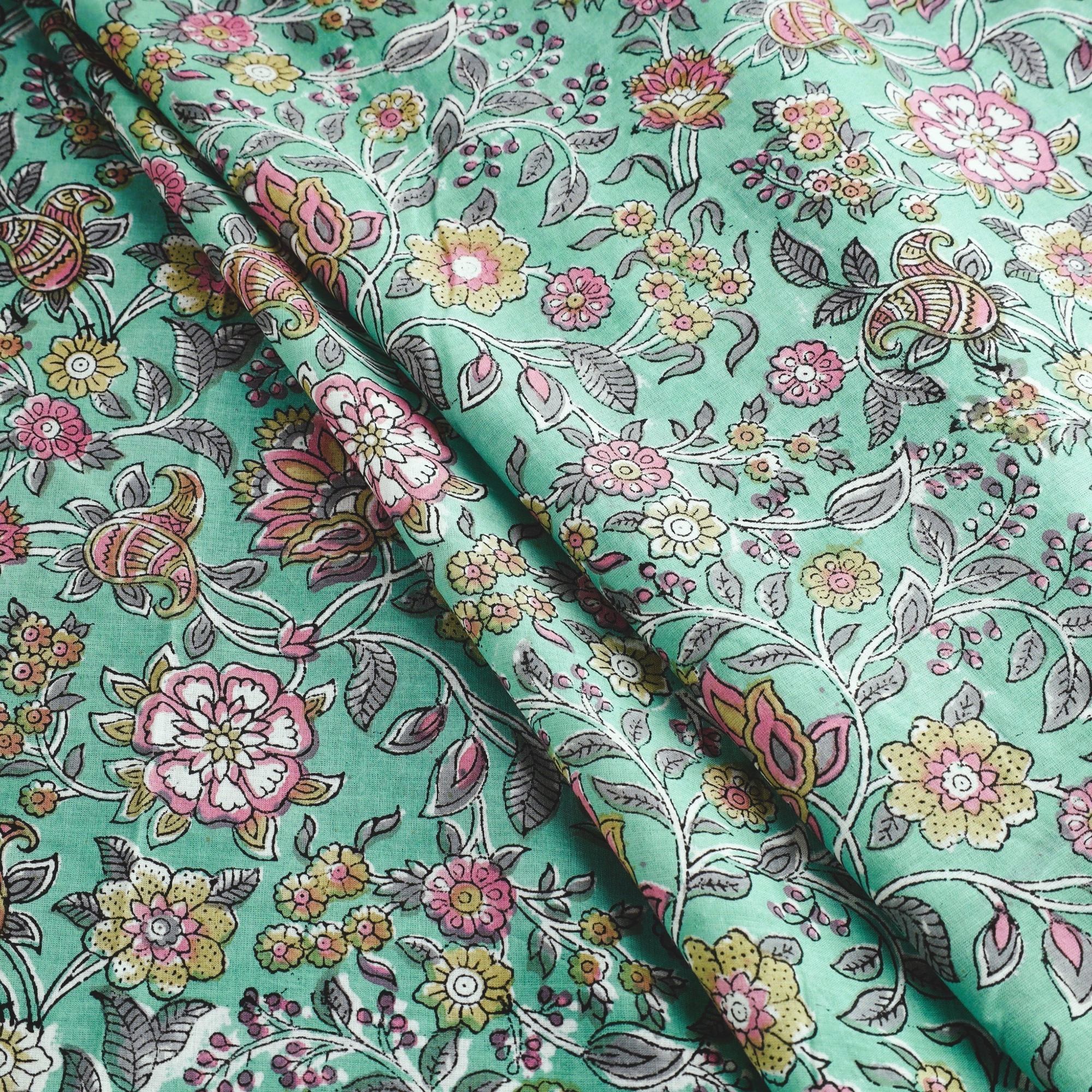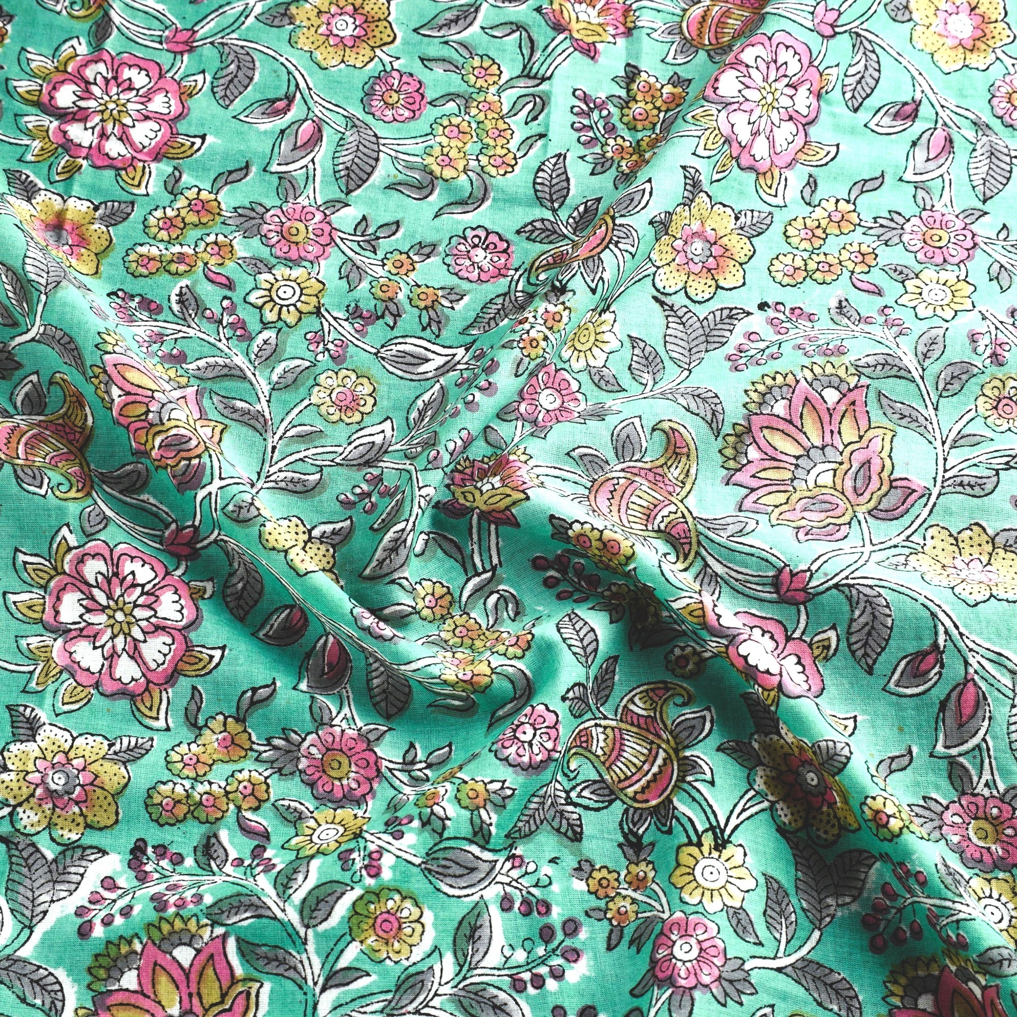 Being a hand block printed fabric, the textile may have slight irregularities in colors and prints.
