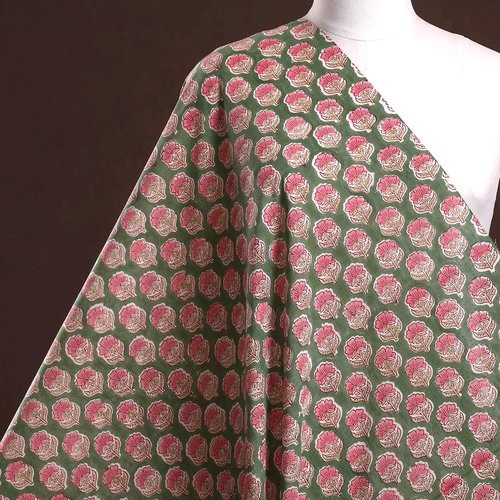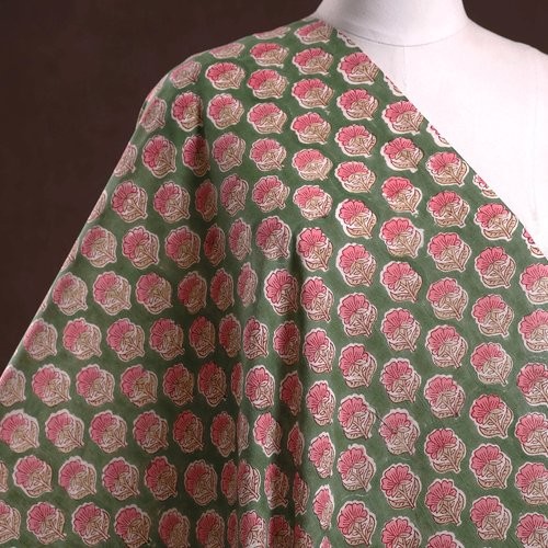 Indian light cotton fabric hand block printed with wooden stamps in India.