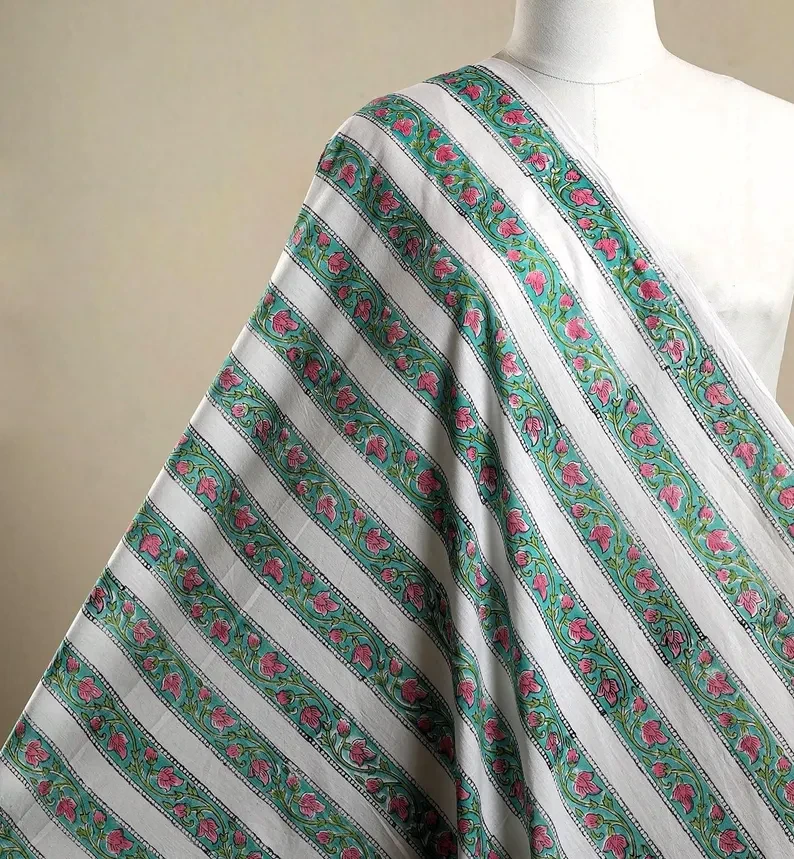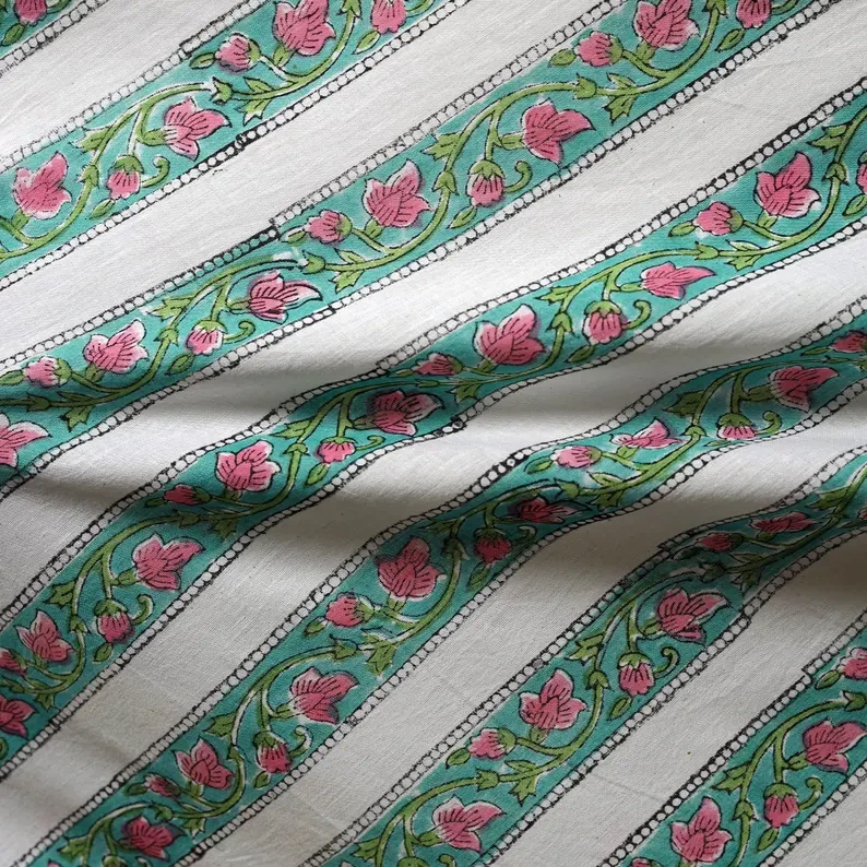 Being a hand block printed fabric, the textile may have slight irregularities in colors and prints.