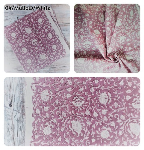 Being a hand block printed fabric, the textile may have slight irregularities in colors and prints.