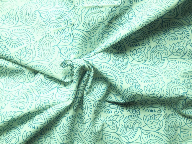 Tissu Coton-Cotton Fabric-Block Print-CELADON WHITE