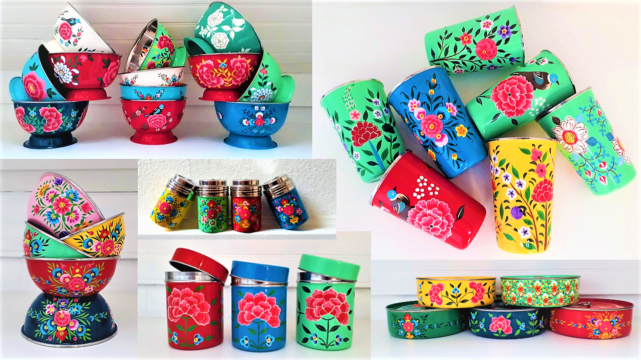 Saupoudreuse/Bol inox émaillé peint à la main-Stainless steel Shaker Sprinkler/Bowl enameled hand painted